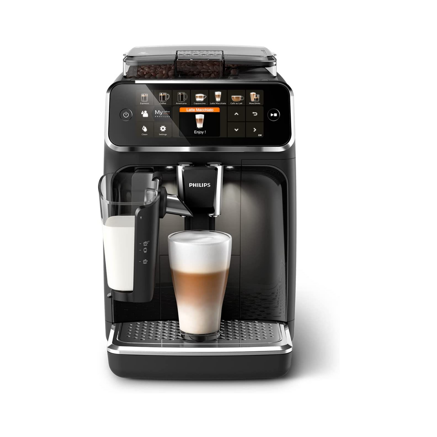 La Philips 3200 incluye todo lo bueno de los modelos anteriores, pero además permite preparar más variedad de bebidas. Destacan especialmente las recetas con leche, donde como novedad podrás regular la cantidad de leche.