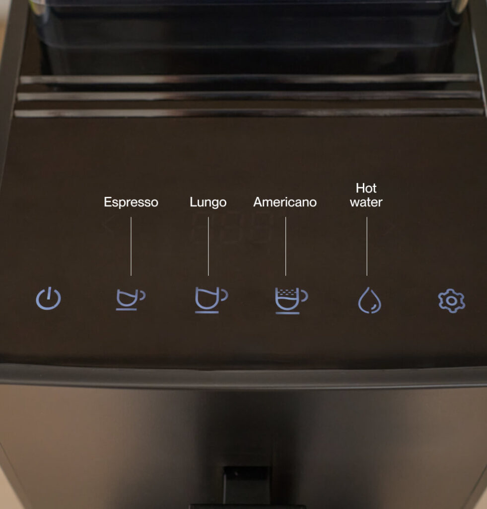 La Incapto Duo cuenta con un bonito panel táctil que permite acceder a las funciones principales de la cafetera y preparar sus recetas preconfiguradas con un solo toque.