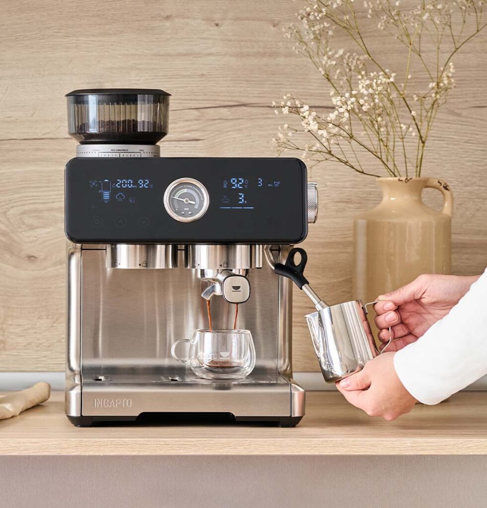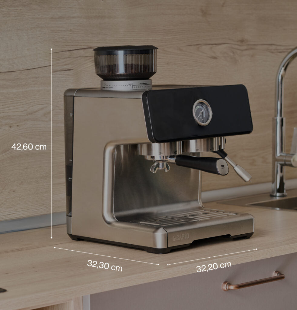 La Incapto Sabi te permitira disfrutar de una experiencia barista, sin complicaciones. Su molinillo integrado facilita el preceso de prensado del café y su espumador manual, te permitirá calentar y espumar la leche igual que hacen en las cafeterías.