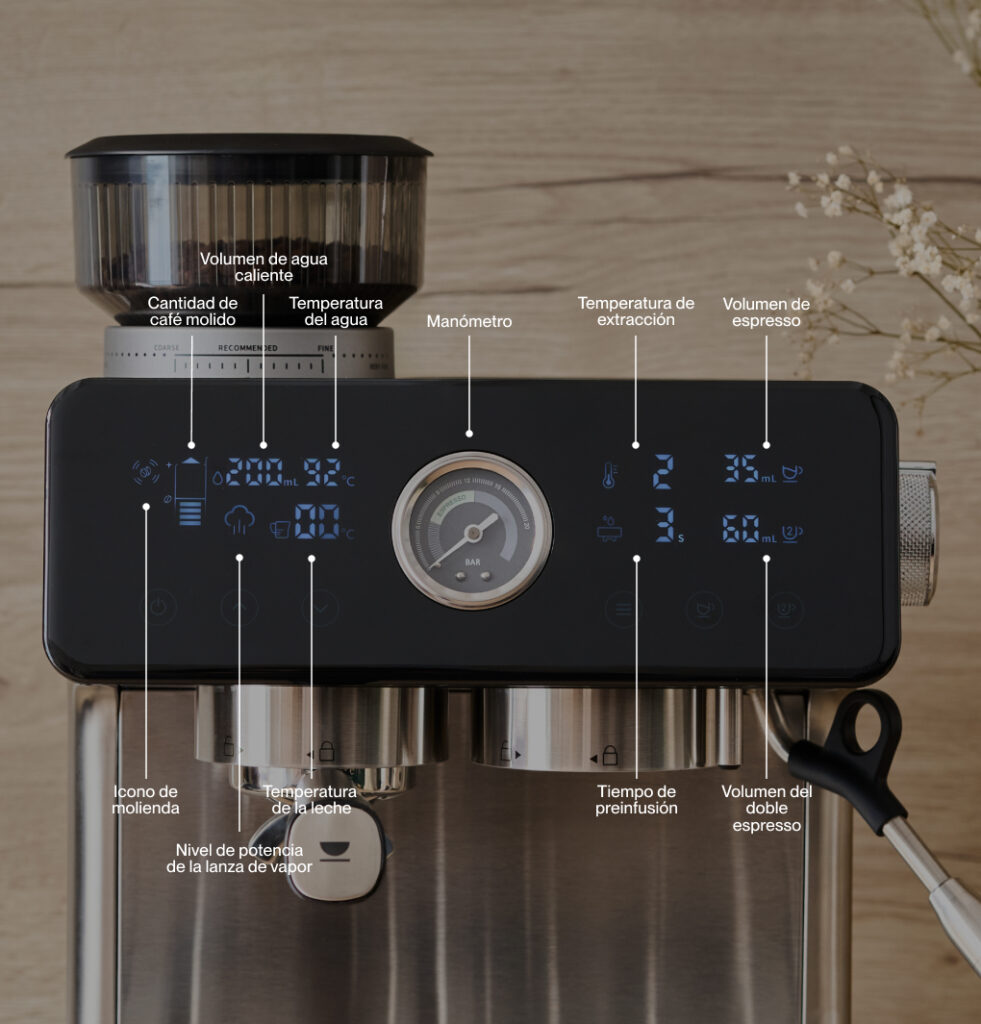 El panel principal de la Incapto Sabi, permite reaizar todo tipo de ajustes para la preración del café. De este modo podrás personalizar tus cafés para que se ajusten perfectamente a tus gustos.